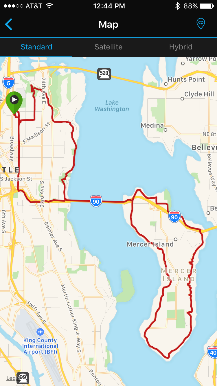 Rode around Mercer Island using the new Garmin 820. Since I already know the ride, I wanted to see if the Garmin would give good instructions. It did well, other than losing the signal in the I-90 tunnel. It didn’t find the route again until I was halfway across the bridge.