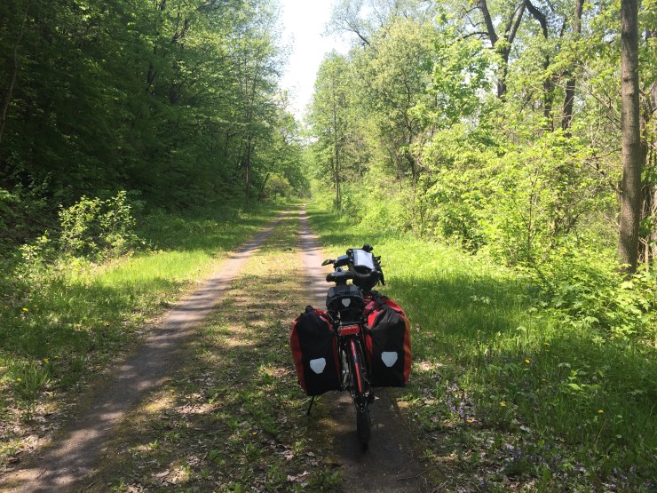 I rode more than 10 miles today on the Canalway Trail, some of which follows the towpath of the Erie Canal. It was quiet and even had some shade. I saw about 4 people on the trail, including a touring cyclist riding from Pittsburgh to Maine, just as I pulled in to Canajoharie. It’s fun to trade stories!