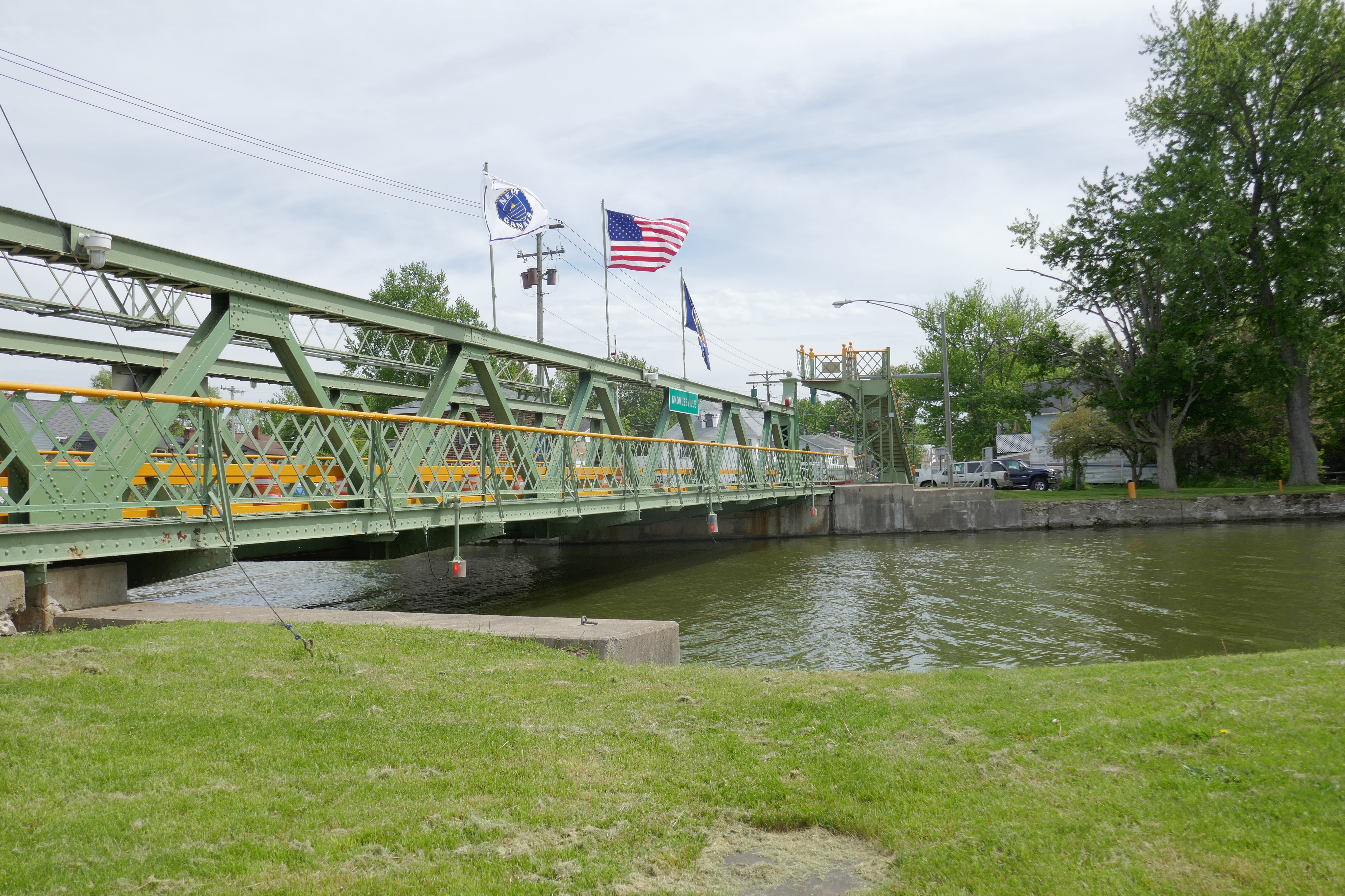 In the morning, I got back on the Canalway Trail where I left off in Pittsford and headed west around Rochester, and then continued to Medina. I stopped in a couple of the small towns along the trail (to eat) and I stopped to take pictures of some of the canal structures. This part of the canal (after Rochester) is the enlargement of the original Erie Canal, and is so flat that along the entire ride today I did not pass a single lock.