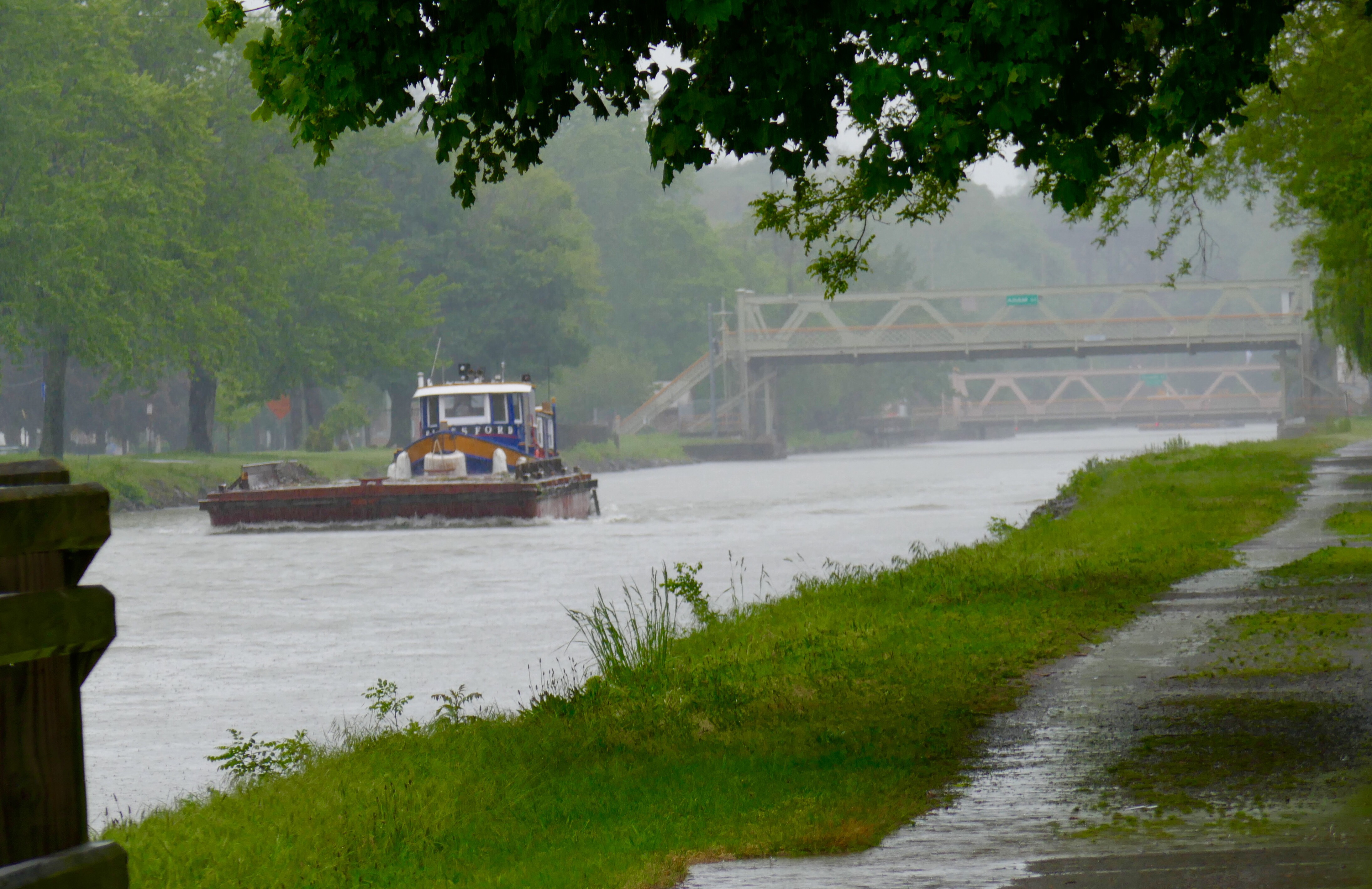 I passed a canal worker who was walking the trail checking for leaks from the canal. And I saw a barge heading downstream: