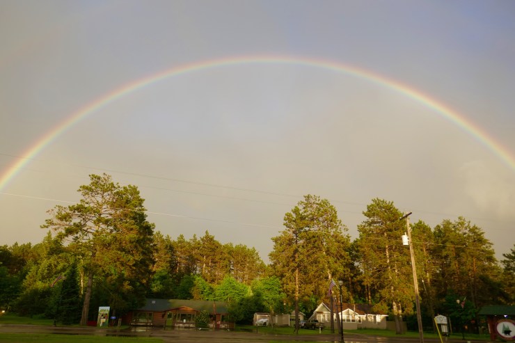 2. Ken and I enjoyed having you stay with us on High Lake. We wish the weather had cooperated so we could have gotten you out on our beautiful lake. Maybe next visit. Hopefully the rainbow is a sign for a better weather this week. Good luck. Be safe.