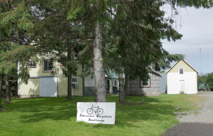 Best part of the day is my stopping point tonight: the Adventure Cyclists Bunkhouse on Hwy 42! The farmer here has converted the barn to a bunkhouse for cyclists, complete with a shower, kitchen, TV, wifi, food, coffee machine – everything a cyclist needs. Two west-to-east riders are here tonight too, and we are trading info on roads, places to stay, and other important intel.