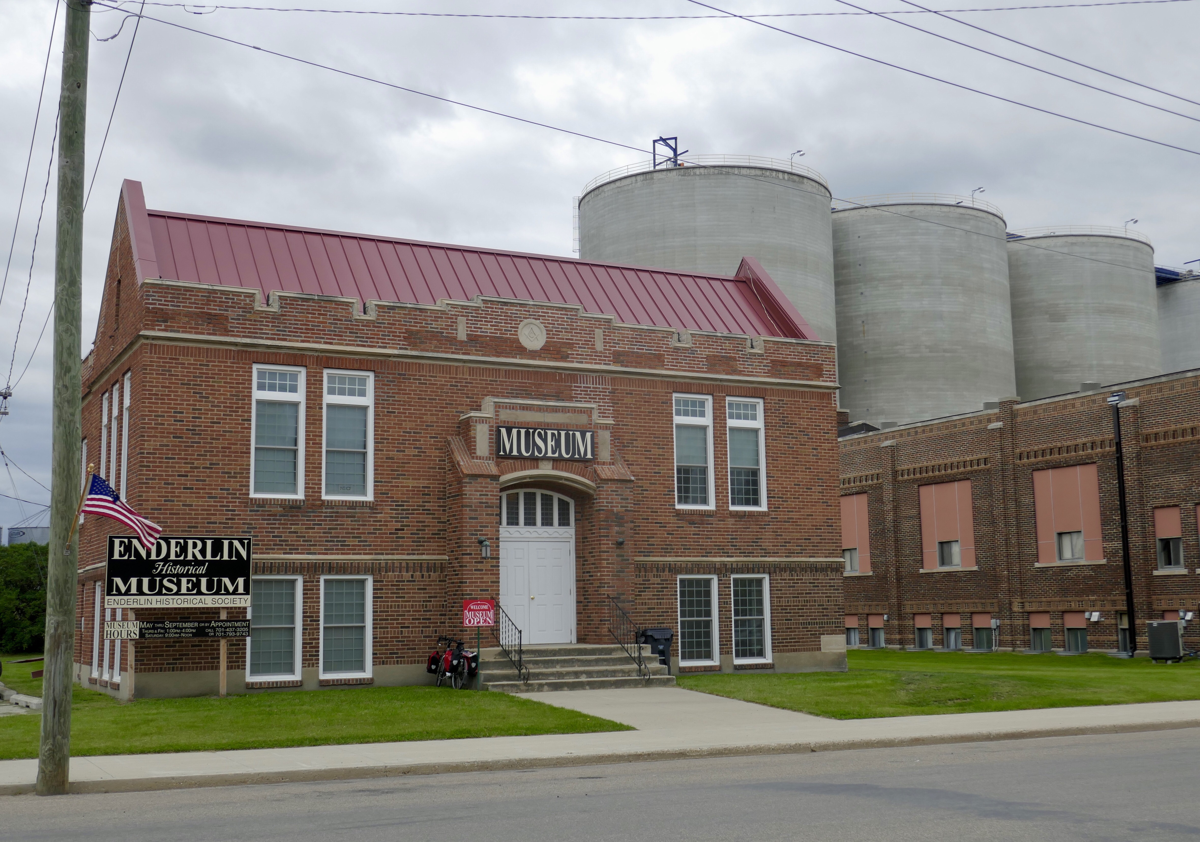 I arrived in Enderlin (population about 850) at around 1:30. As I was riding up the Railroad St., trying to get my bearings, a woman came out of the museum building to welcome me to Enderlin. That’s a first! I went across the street for lunch and then came back to see the museum. It’s got some really nice exhibits showing the history of the town. It’s a railroad town, originally on the Soo Line, which had a roundhouse here for repair of steam engines. Now the Canadian Pacific has the lines and this is one of their division points, so there are still a significant number of people employed by the railroad.