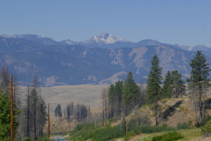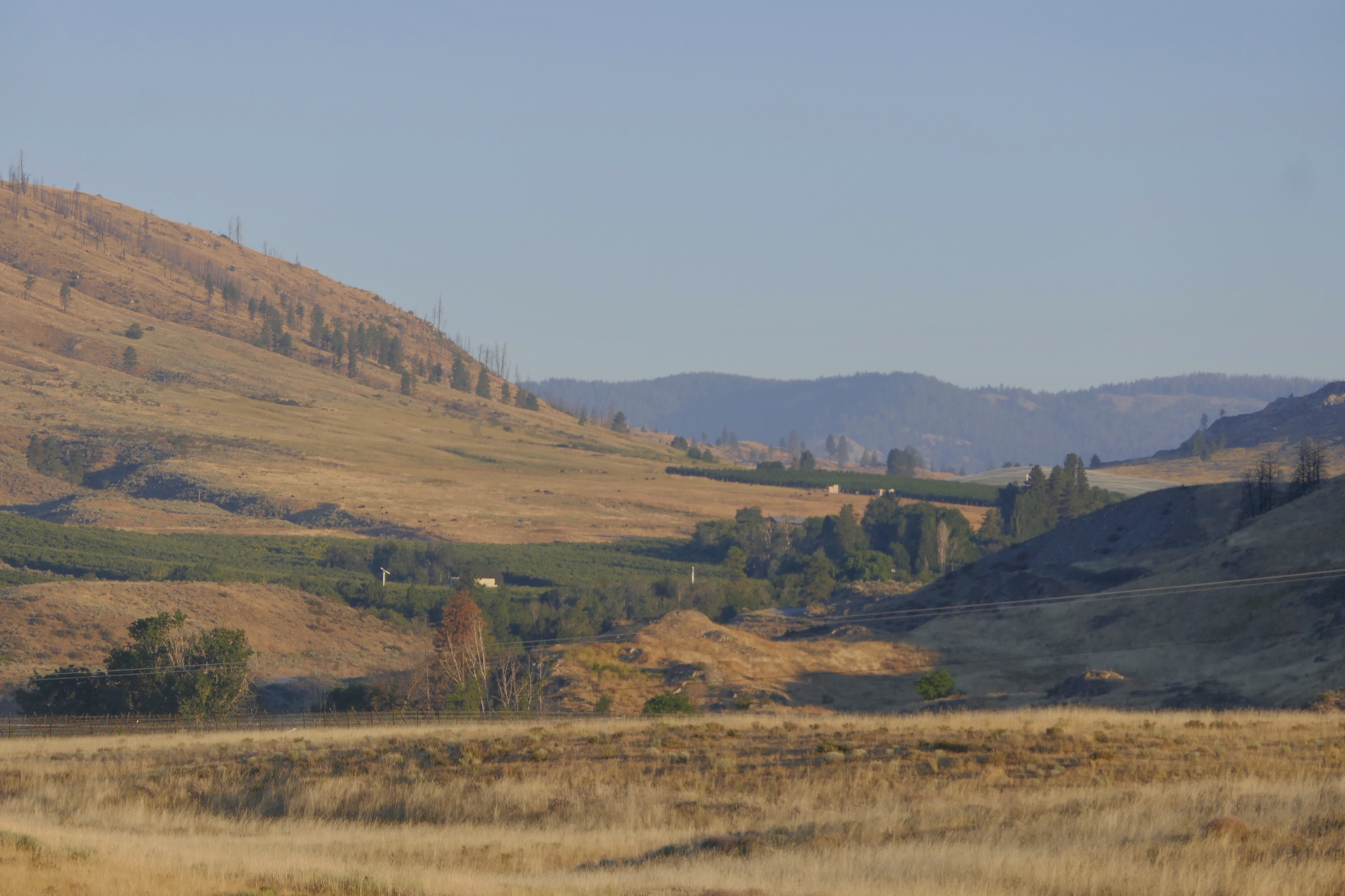 And on the way down, I had great views toward the Cascades — as well as 8 miles of 6 percent grade. There is definitely some smoke in the air but it did not cause any problem. Hopefully, the wind will not change in the next few days. The fire is north of Mazama, near the Canadian border.